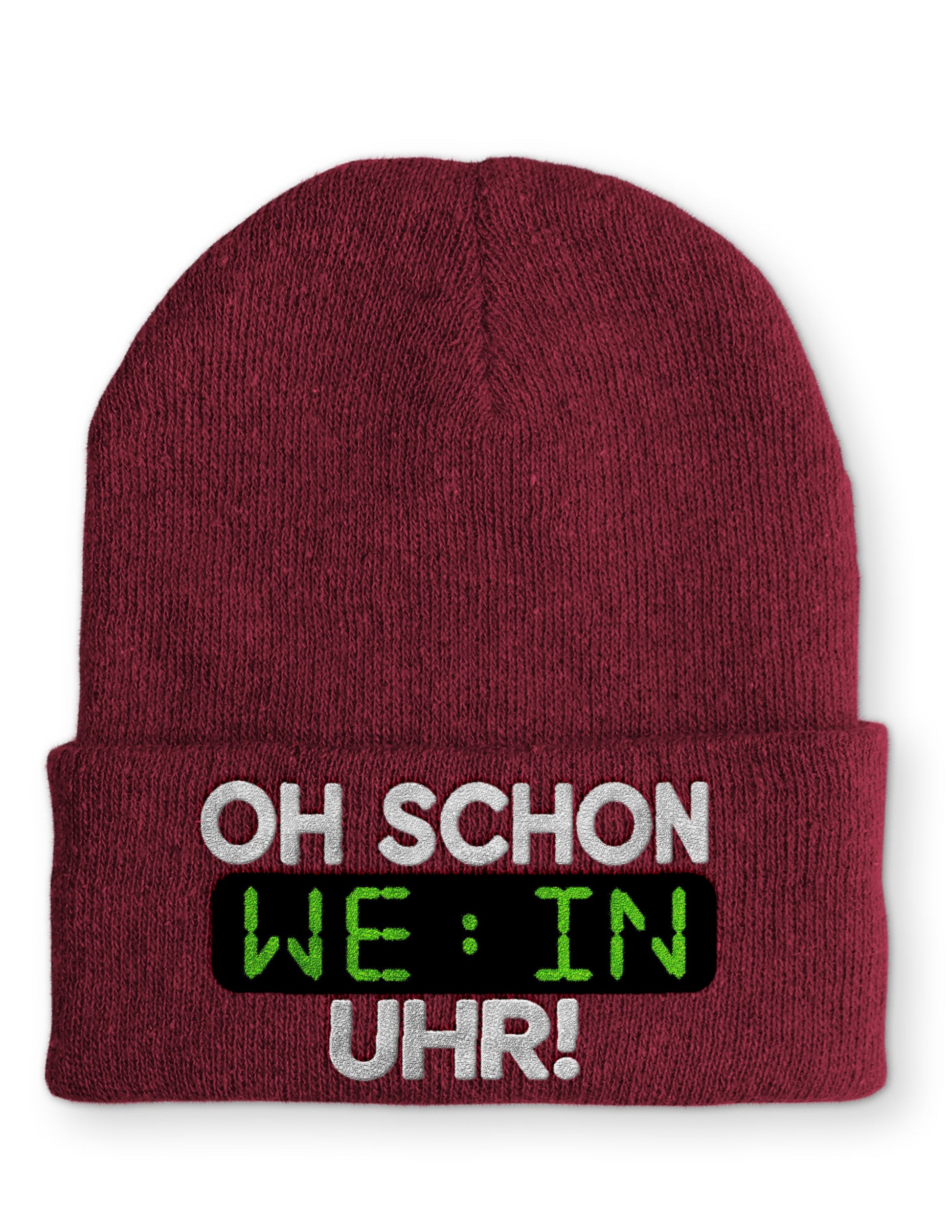 Oh schon Wein Uhr Statement Beanie Mütze mit Spruch